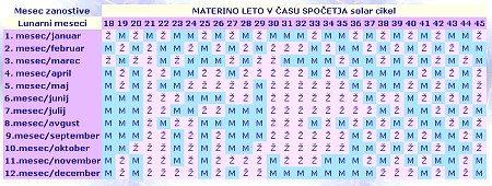 starosti in meseca zanositve izračunavali. Ta tabela, ki so jo našli pred približno