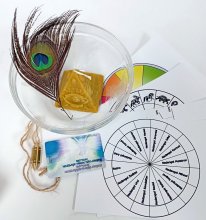 Slika 2: S kompletom »Nebeške prerokbe« za vlivanje voska (na voljo na Misteriji.si ali 051/307 777) si lahko tudi sami doma postavljate vprašanja in prejemate angelska sporočila. V kompletu so steklena posoda z motivi nadangelov, sveča iz čebeljega voska, USB ključ - kartica s posneto meditacijo in navodili, štiri rozete za razbiranja z nihalom in posebno Metatronovo nihalo.