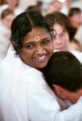 Vsakogar, ki pride k njej, nežno objame, ga ljubeče stisne k svojemu srcu in deli svojo neizmerno ljubezen z vsemi - ne glede na veroizpoved, kdo so in zakaj so prišli k njej. S to preprosto, a učinkovito gesto Amma spreminja življenja neštetih ljudi in pomaga, da v enem samem objemu vzcvetijo njihova srca. Od nikogar ne zahteva, da mora verovati v Boga ali spremeniti svojo vero, ampak le, da naj raziskuje svojo pravo naravo in verjame vase.