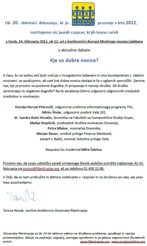 Brezplačne pozitivne novice, članke, zgodbe, recepte, informacije o zaposlitvah, razpisih in obvestila o seminarjih ter delavnicah lahko dobivaš tudi na dom.
