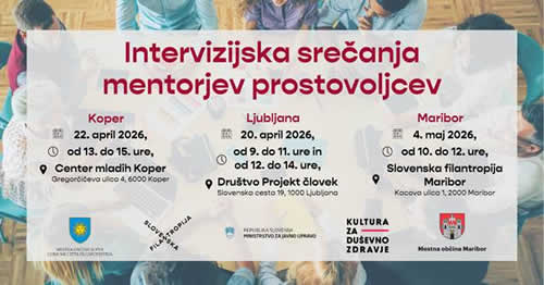 Vabilo na intervizijska srečanja mentorjev prostovoljcev