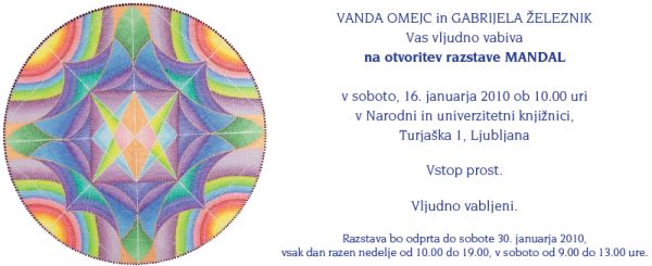 Vas vljudno vabiva na otvoritev razstave MANDAL,