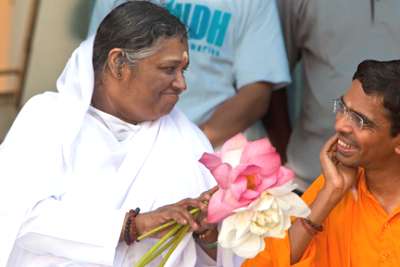 “Ljubezen nam lahko pomaga premagati vse fizične, čustvene in intelektualne napetosti, kar nam prinese mir in srečo.” – Amma