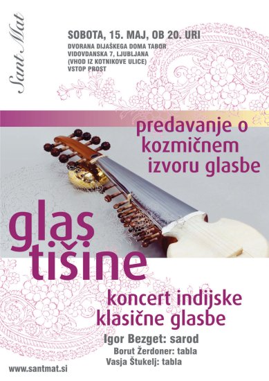 Predavanju o izvoru glasbe bo sledil koncert indijske klasične glasbe, ki ga bodo izvajali vrhunski slovenski glasbeniki, izšolani v Indiji.