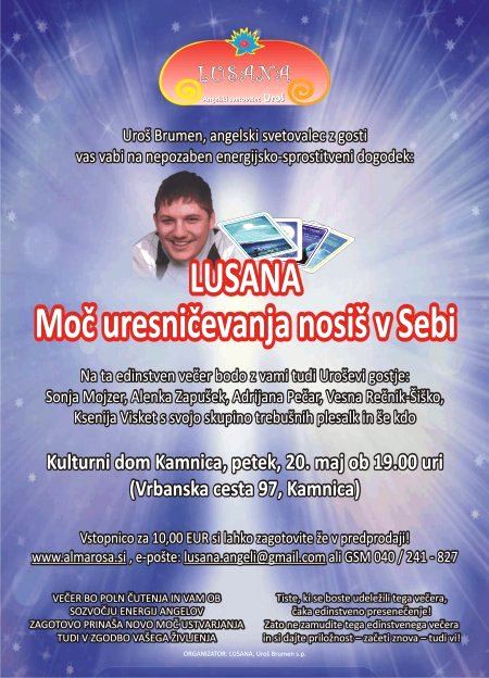 Uroš Brumen, angelski svetovalec z gosti vas vabi na nepozaben energijsko - sprostitveni dogodek: